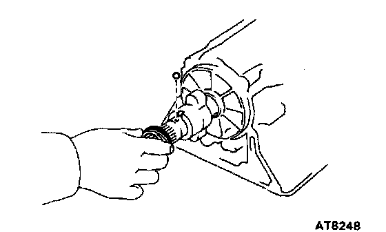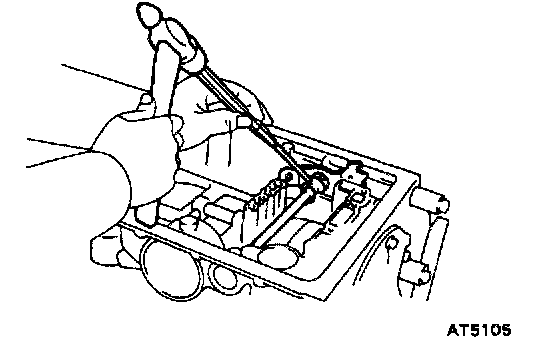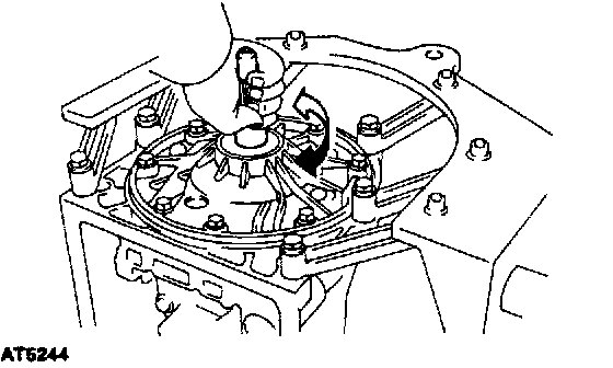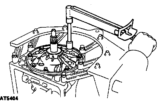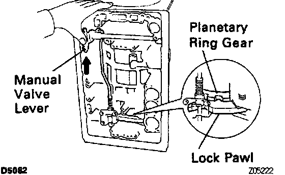e) Shift the manual valve lever to the P position, and confirm that the planetary ring gear is correctly locked up by the pawl.