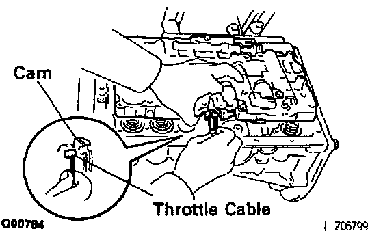 b) Connect the throttle cable to the cam.