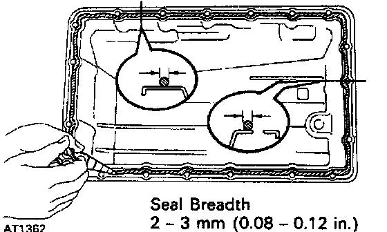 b) Apply seal packing to the oil pan. Seal packing: Part No. 08826-00090, THREE BOND 1281 or equivalent