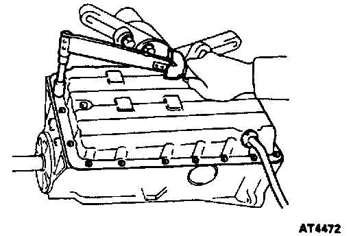 a) Remove any packing material and be careful not to drop oil on the contacting surfaces of the transmission case and oil pan.