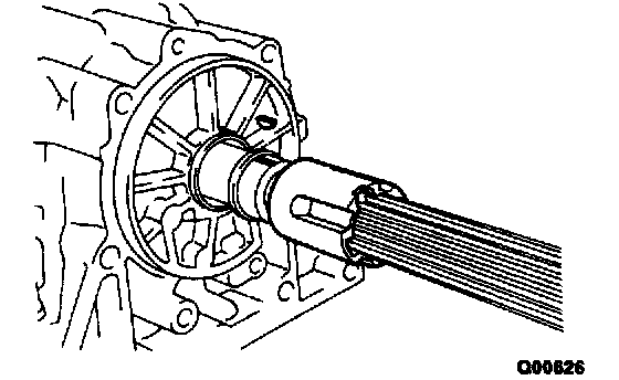 c) Place the oil pump through the input shaft, and align the bolt holes of the pump body with the transmission case.
