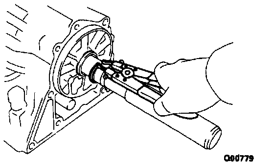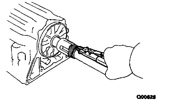 d) Hold the input shaft, and lightly press the oil pump body to slide the oil seal rings into the O/D direct clutch drum.