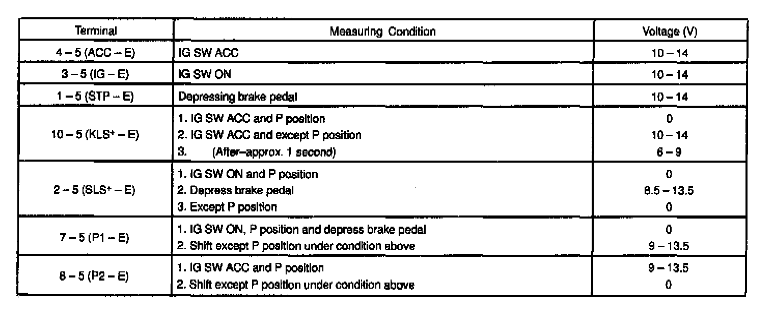 3. INSPECT SHIFT LOCK SOLENOID