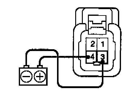 c. Touch the solenoid with your finger and check that solenoid operation can be felt when battery positive voltage is applied intermittently to the terminals 1 and 2.
