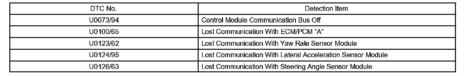 DIAGNOSTIC TROUBLE CODE CHARTU0073/94 - U0126/63: