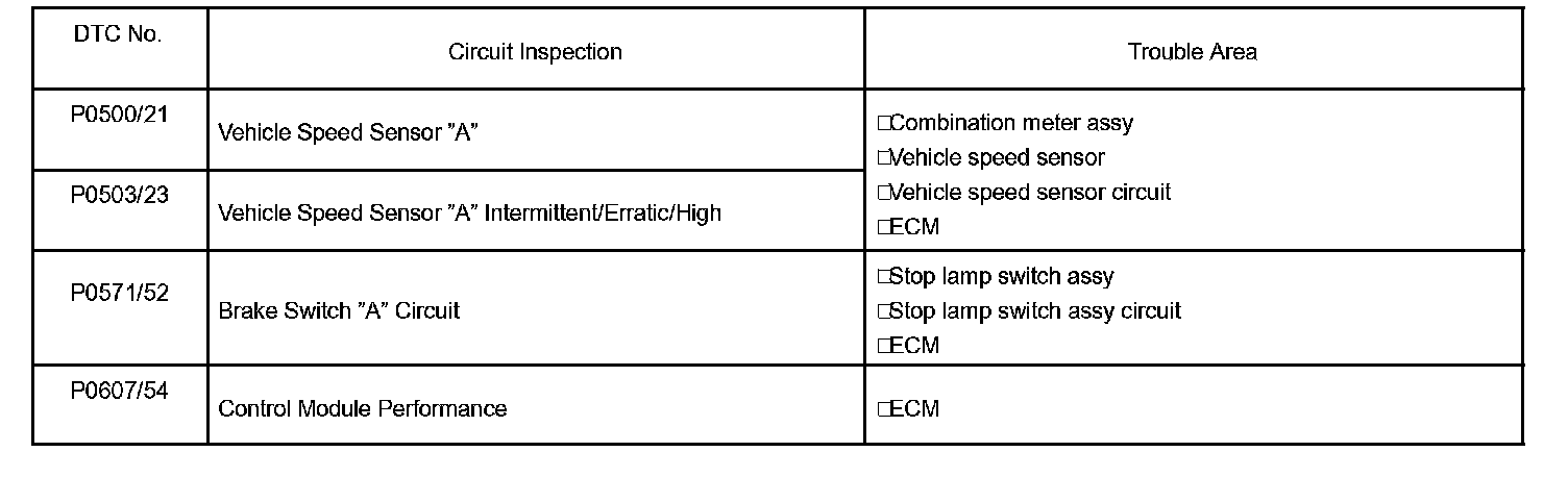 If a malfunction code is indicated during the DTC check, check the circuit listed for that code in the table.
