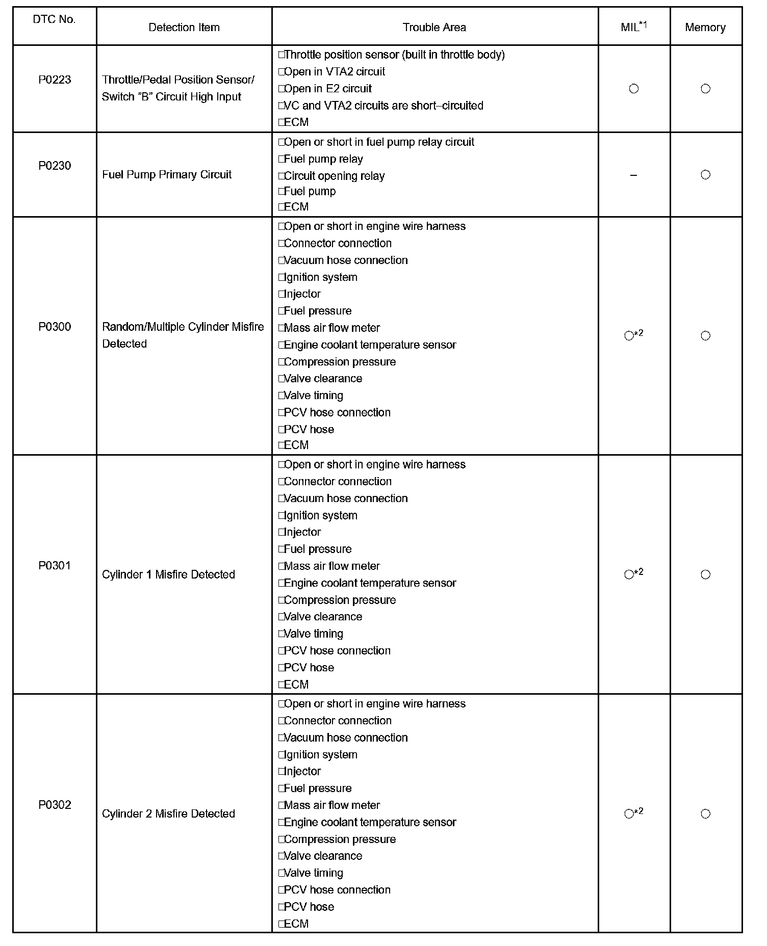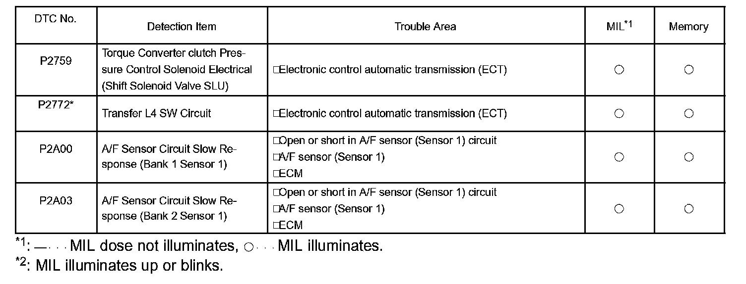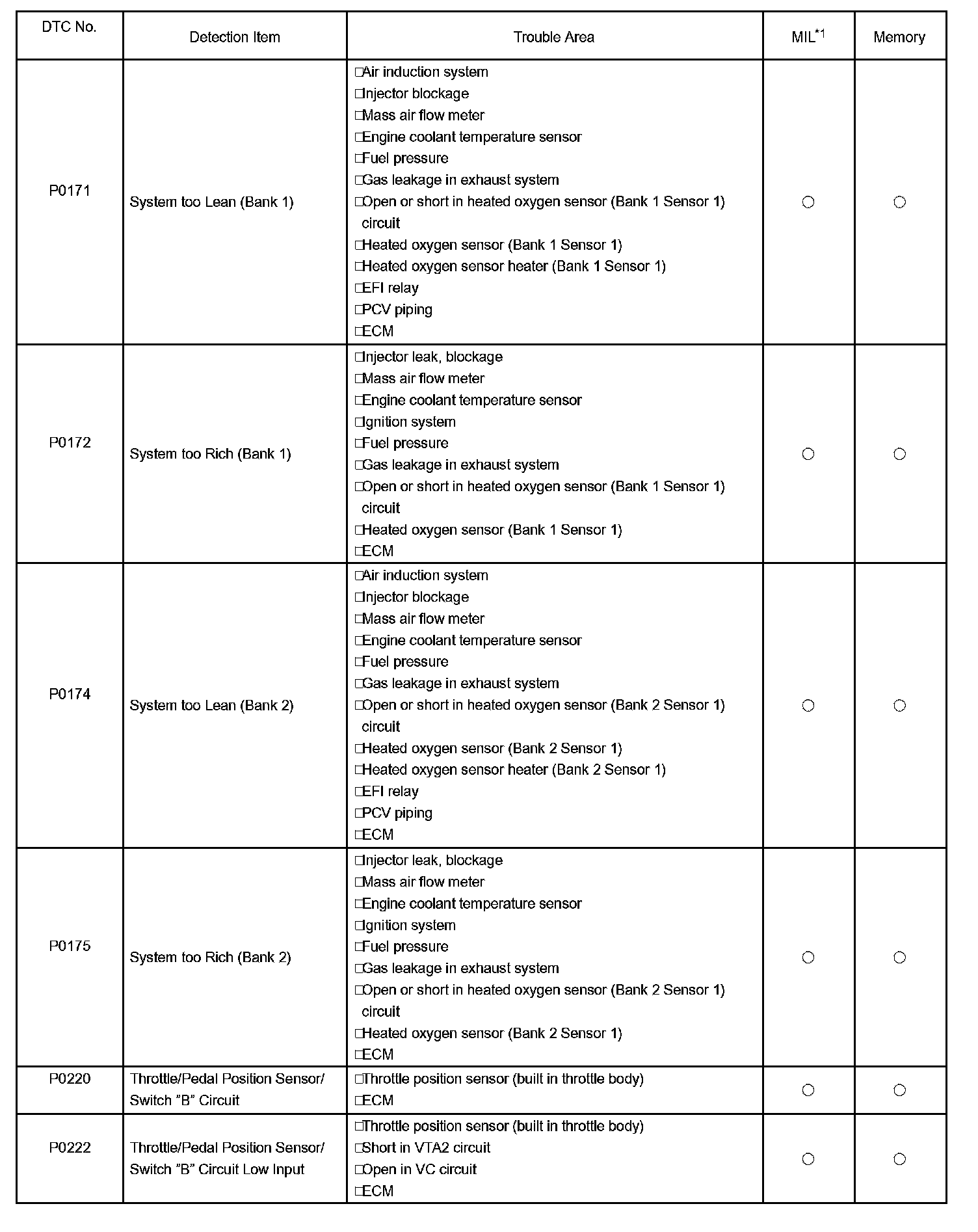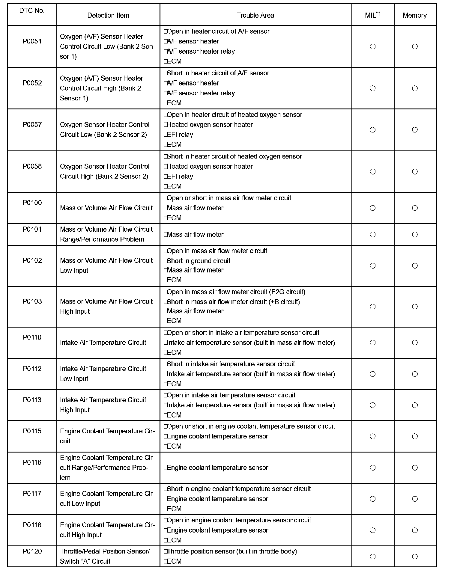 During the DTC check, refer to the table given if a malfunction code is displayed. For details about each code, refer to the DTC Chart.