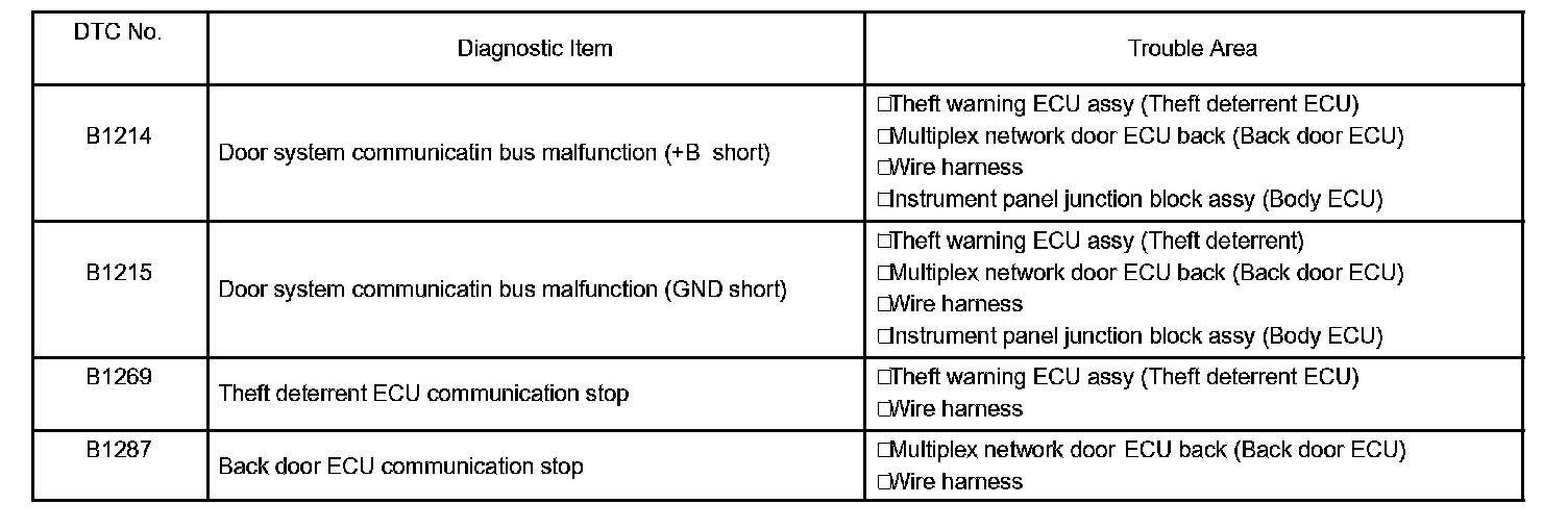 If a malfunction code is displayed during the DTC check, check the circuit listed for that code in the chart.