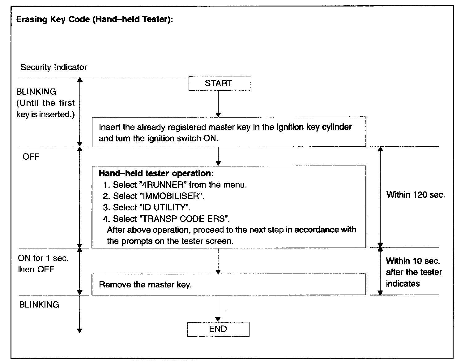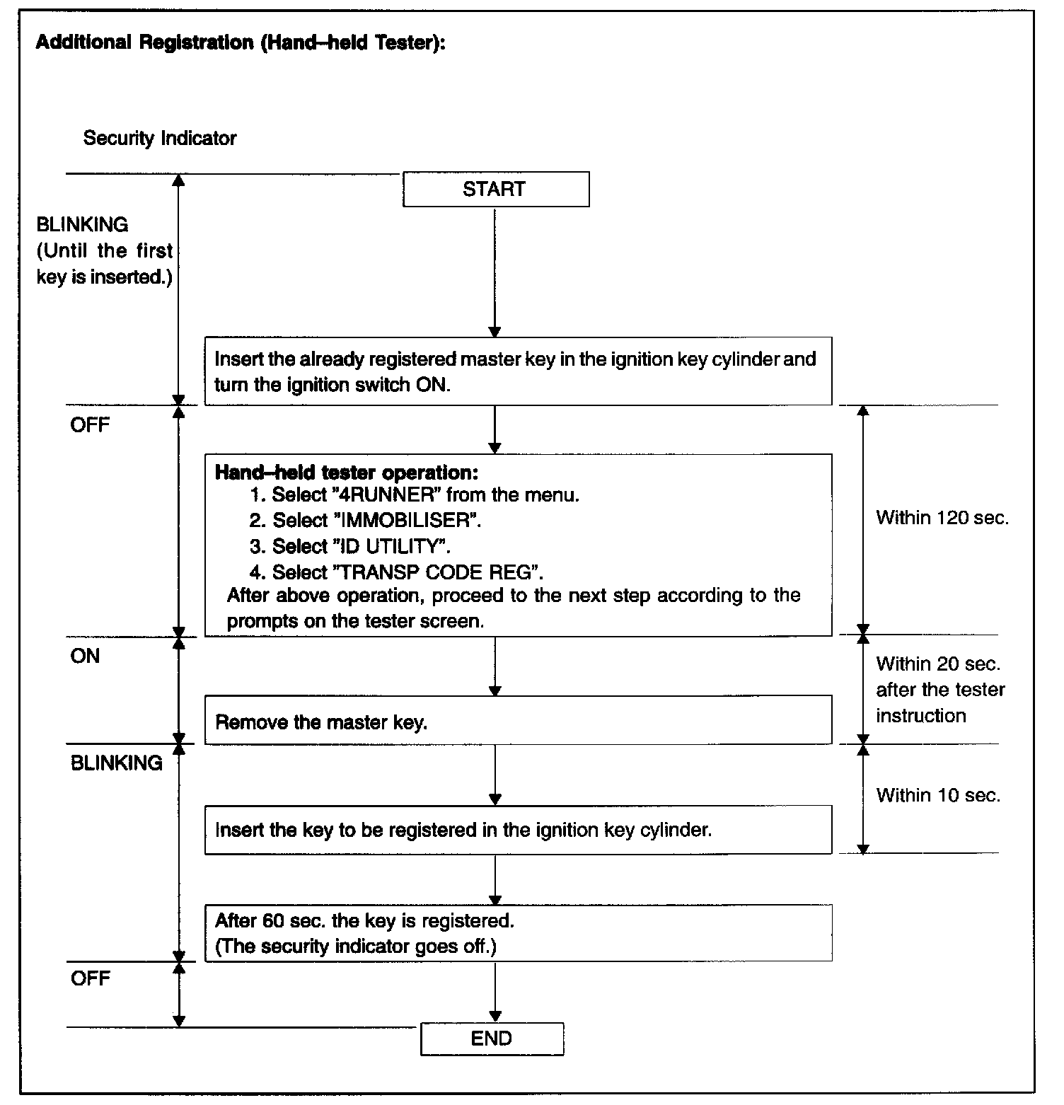 1. Turn the ignition switch ON/OFF alternately 5 times within 10 seconds using the already registered master key.