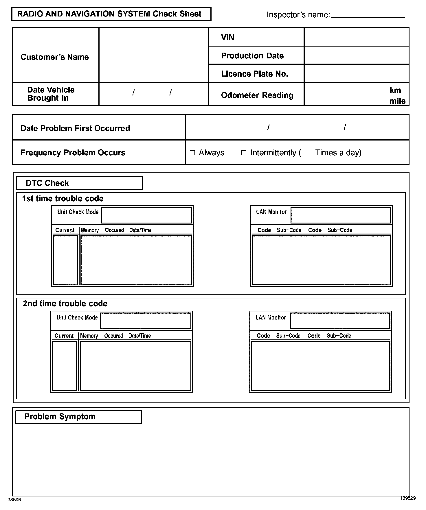 Radio And Navigation System Check Sheet: