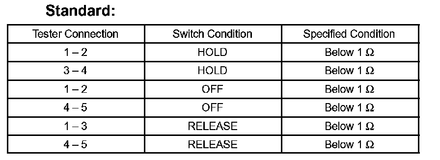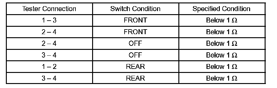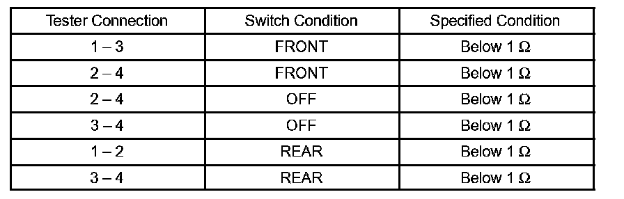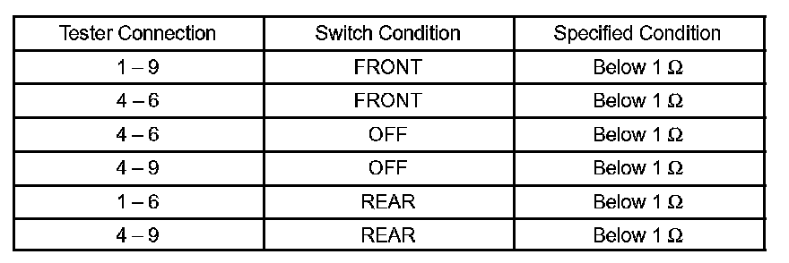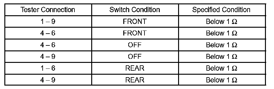 If the result is not as specified, replace the switch assembly