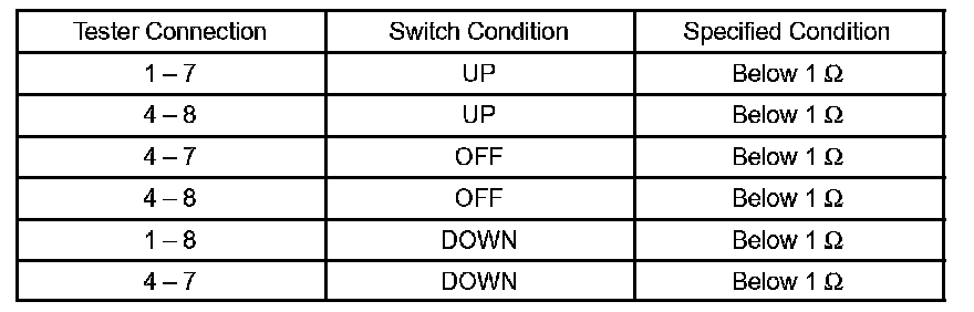 INSPECT FRONT POWER SEAT SWITCH LHa. Check the resistance between the terminals when each switch is operated.