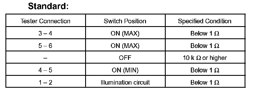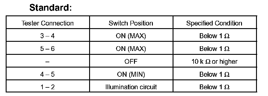 INSPECT SEAT HEATER SWITCH LHa. Check the resistance between the terminals when the switch is operated.