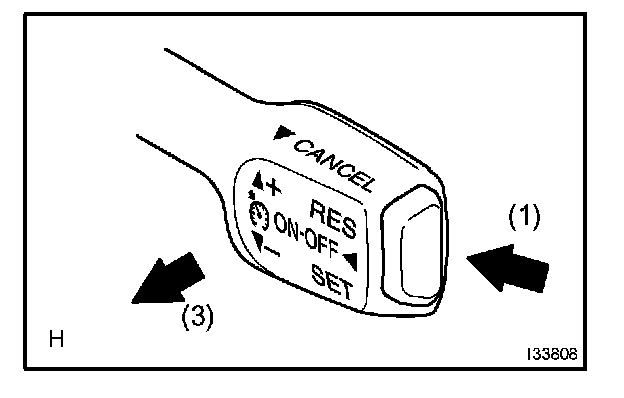 3. Check that the vehicle speed decreases while the control switch is push down to -/SET, and the vehicle cruises at the set speed when the switch is released.