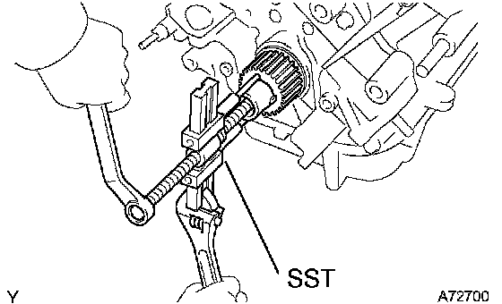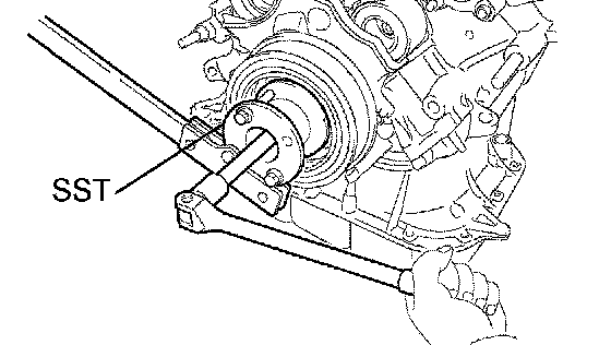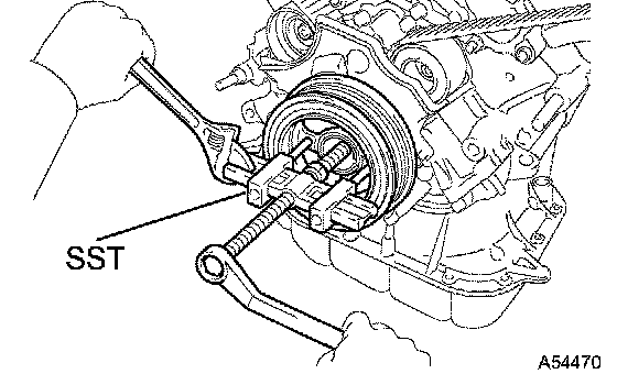 b. Using SST, remove the crankshaft pulley.