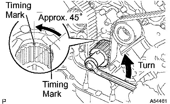 a. Set the No.1 cylinder to approx. 45° BTDC/compression.