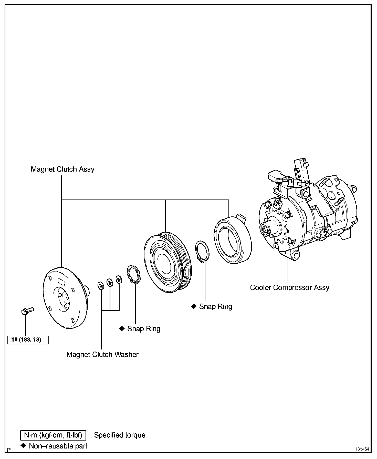 NOTE: Do not change the combination of the magnet clutch washers used before disassembly.