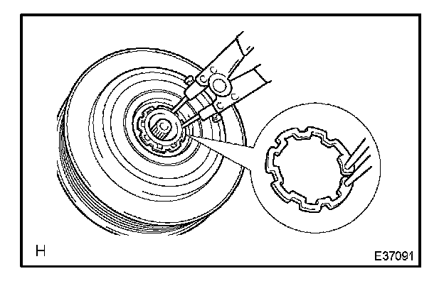 c. Using a snap ring expander, remove the snap ring and magnet clutch rotor.