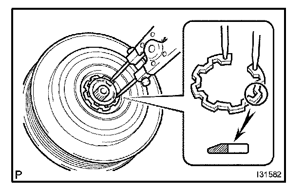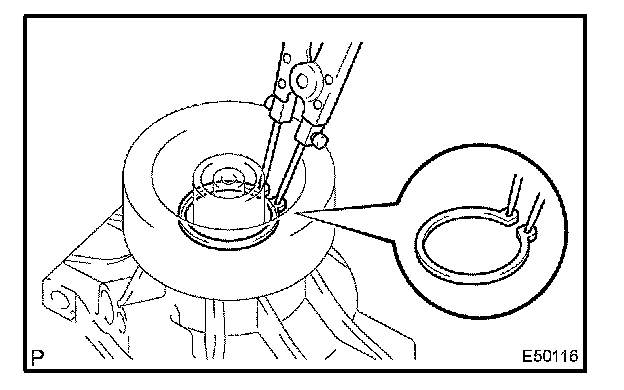 b. Using a snap ring expander, install a new snap ring with the chamfered side facing up.