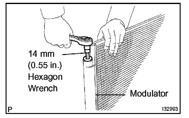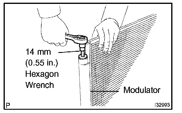 a. Using hexagon wrench 14 mm (0.55 in.), remove the cap and filter from the modulator.