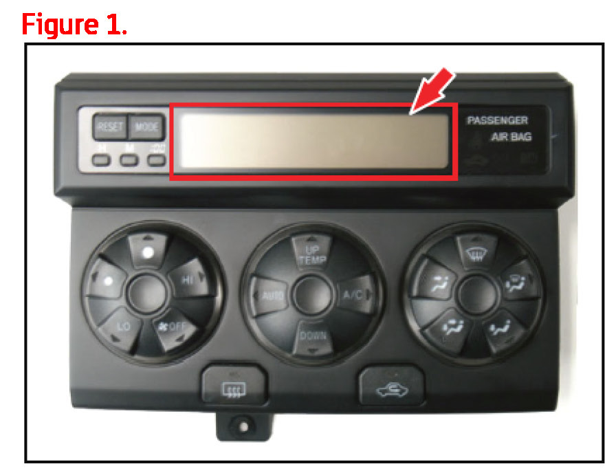1. Confirm that the customer's concern is of a dim, flickering, or intermittently inoperative HVAC illumination panel in the area shown in Figure 1.