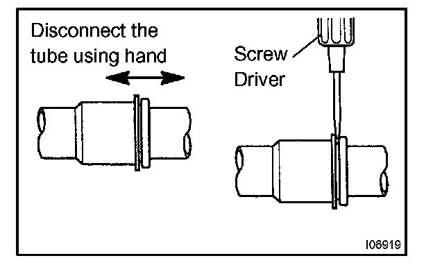 d. Disconnect the air conditioning tube assembly.