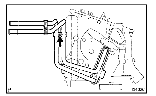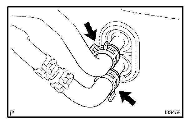 a. Using pliers, grip the claws of clip and slide the clip and disconnect the heater water outlet hose A (from heater unit).