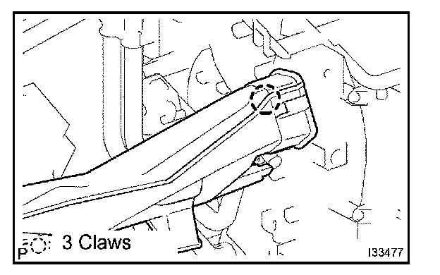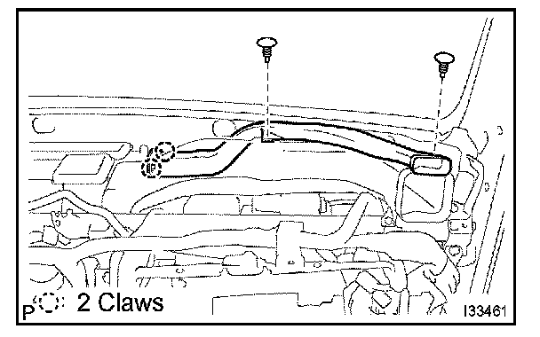 b. Release the 2 claw fittings and remove the side defroster nozzle duct No.1.