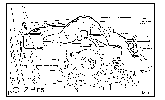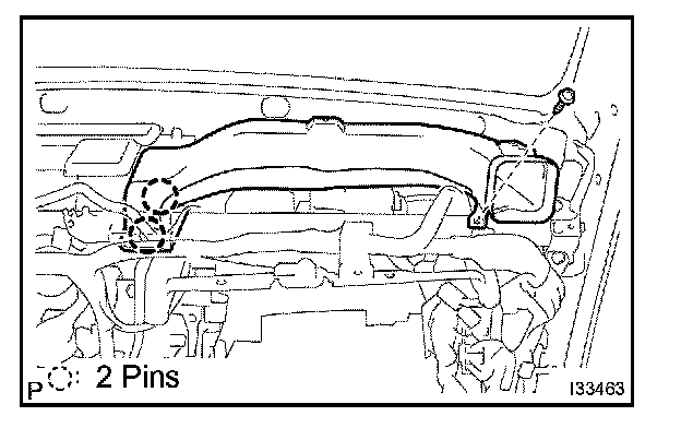 b. Release the 2 pin fittings and remove the heater to register duct No.3.