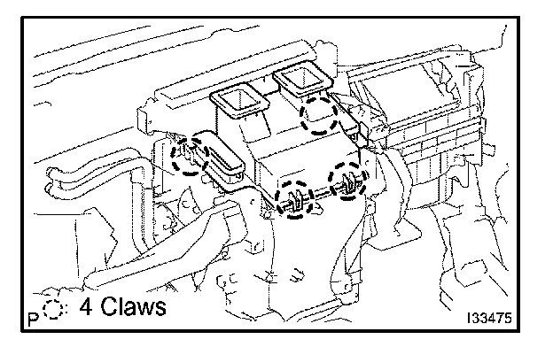 a. Release the 4 claw fittings and remove the defroster nozzle assembly lower.
