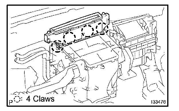a. Release the 4 claw fittings and remove the heater to register duct center.
