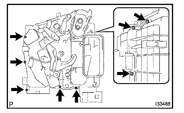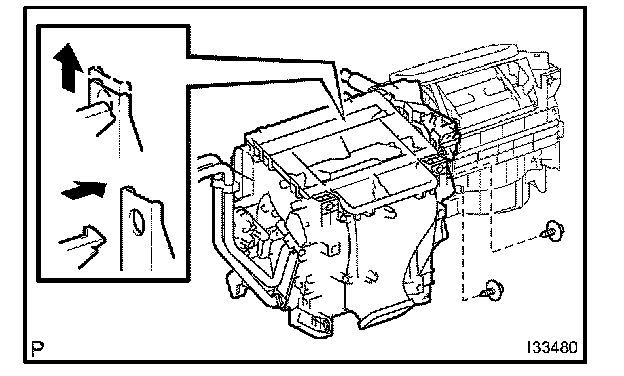 c. Install the cooler evaporator sub-assembly No.1 on the heater case.