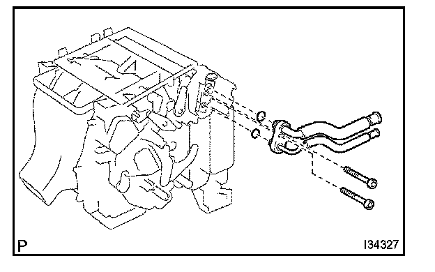 c. Using a hexagon wrench 4.0 mm (0.15 in.), remove the 2 hexagon bolts and air conditioning tube assembly.