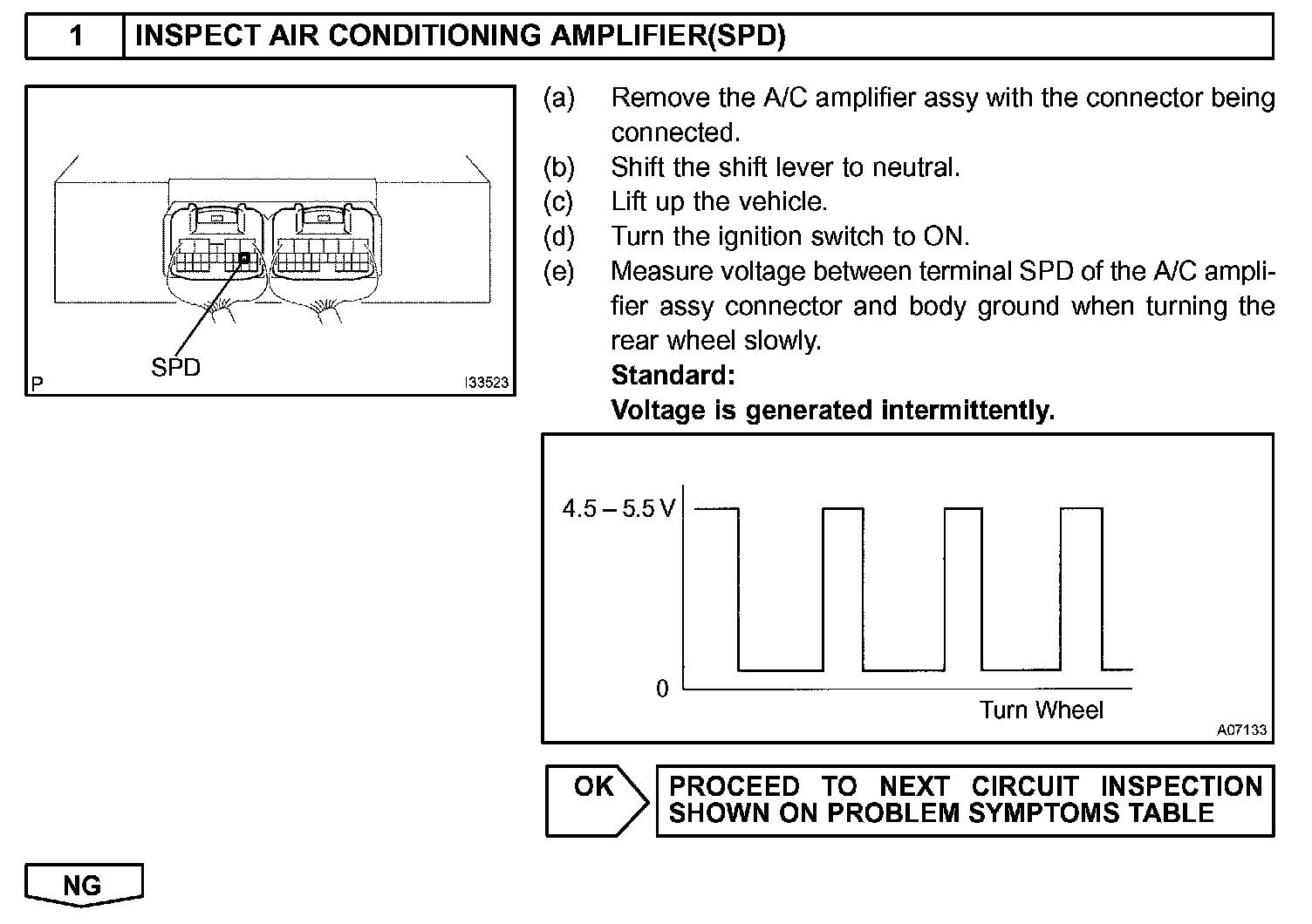 The A/C amplifier monitors the vehicle speed through the signals sent from the speed sensor. The A/C amplifier uses these signals to revise the ambient temperature sensor signal.