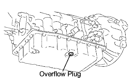 3. Install a new gasket and overflow plug when the draining ATF becomes a trickle.