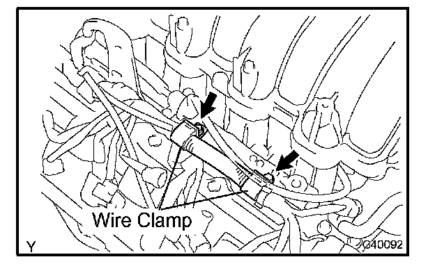 b. Disconnect the 2 wire clamps from the wire clamp bracket on the RH delivery pipe.