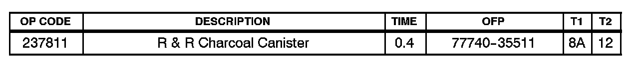 2. To correct a leak at the charcoal canister, replace the charcoal canister according to the 2005 model year 4Runner Repair Manual charcoal canister replacement procedure. Refer to TIS, 2005 model year 4Runner Repair Manual: Emission Control: Charcoal Canister Assy (2UZ-FE): Replacement.