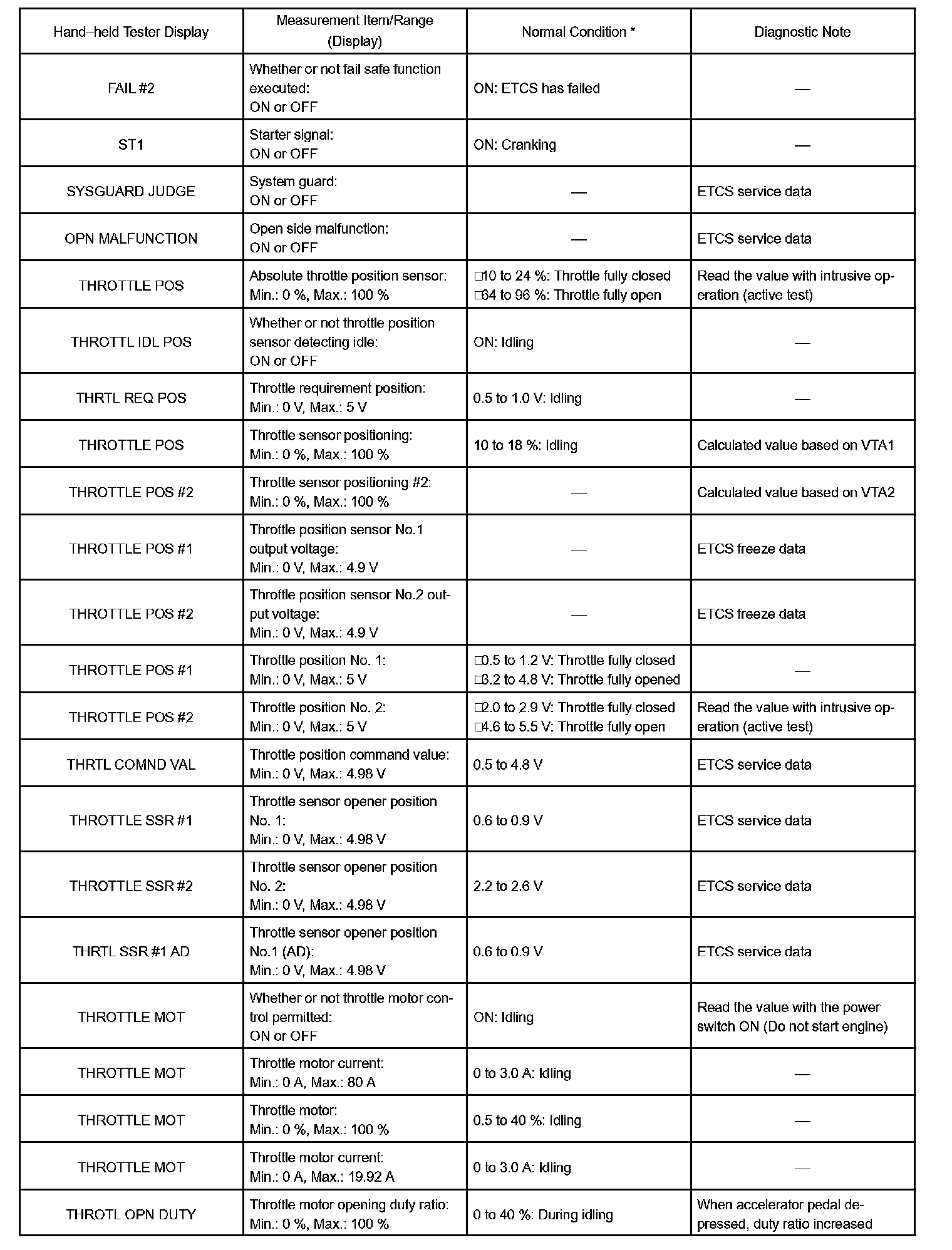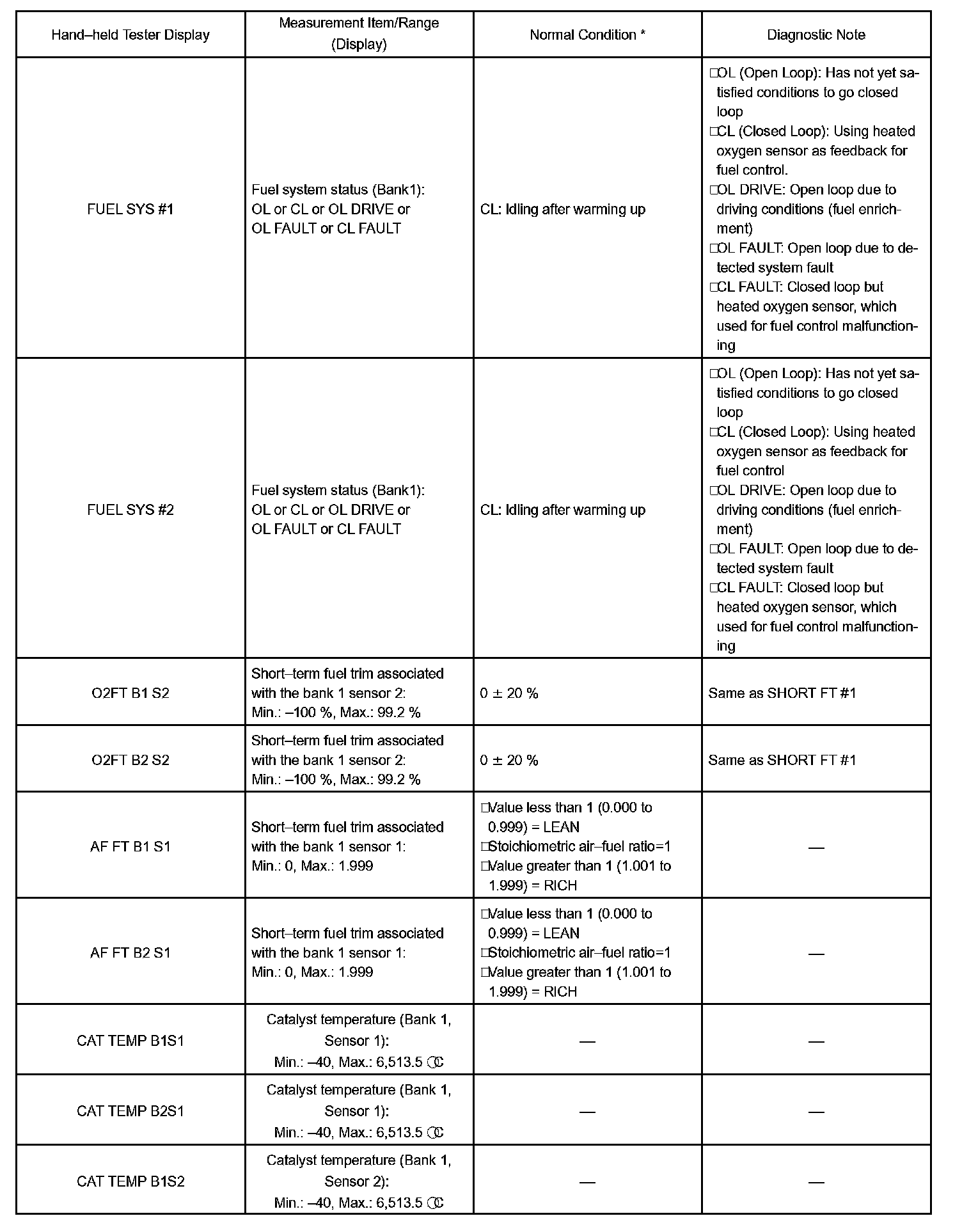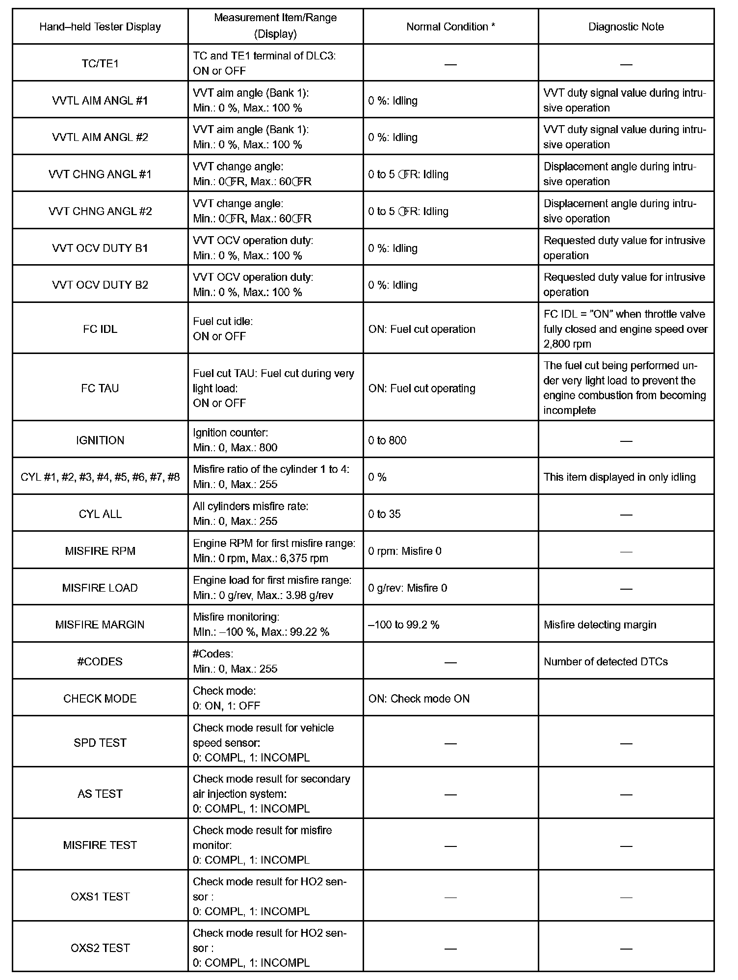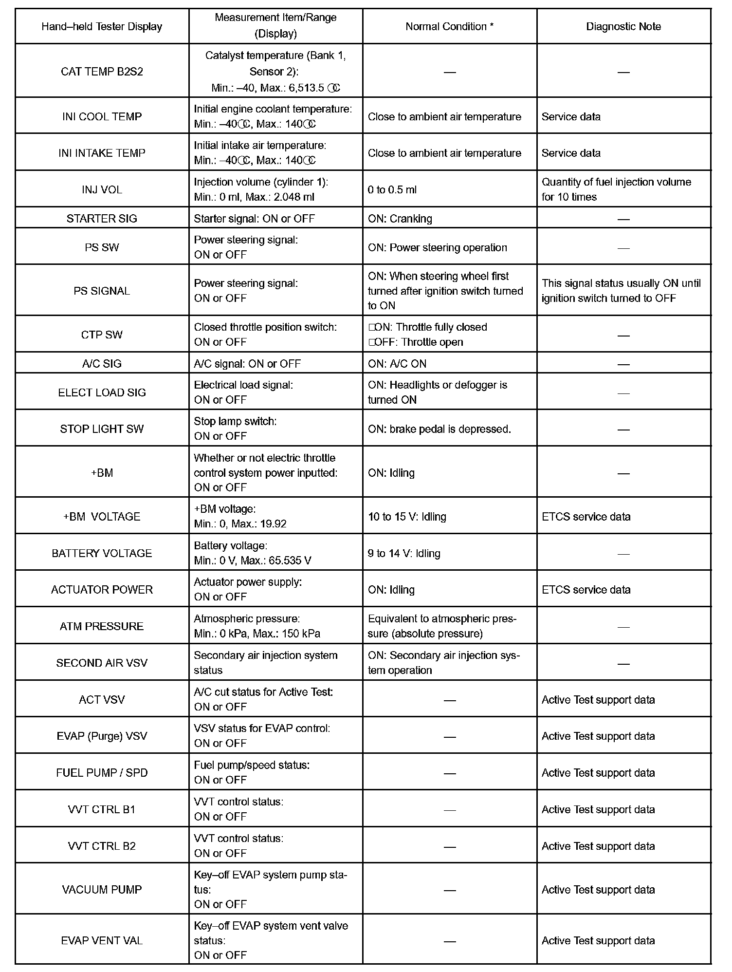 DATA LISTHINT: Using the hand-held tester, DATA LIST allows switch, sensor, actuator and other item values to be read without removing any parts. Reading DATA LIST early in troubleshooting is one way to shorten labor time.
