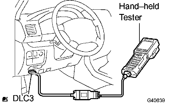 1 Connect the hand-held tester or OBD II scan tool to the DLC3.