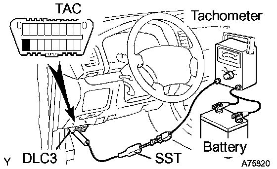 3 Using SST, connect the tachometer probe to terminal TAC of the DLC3.