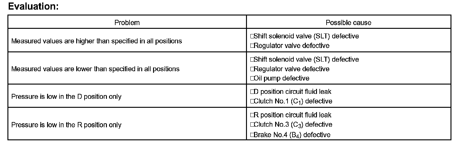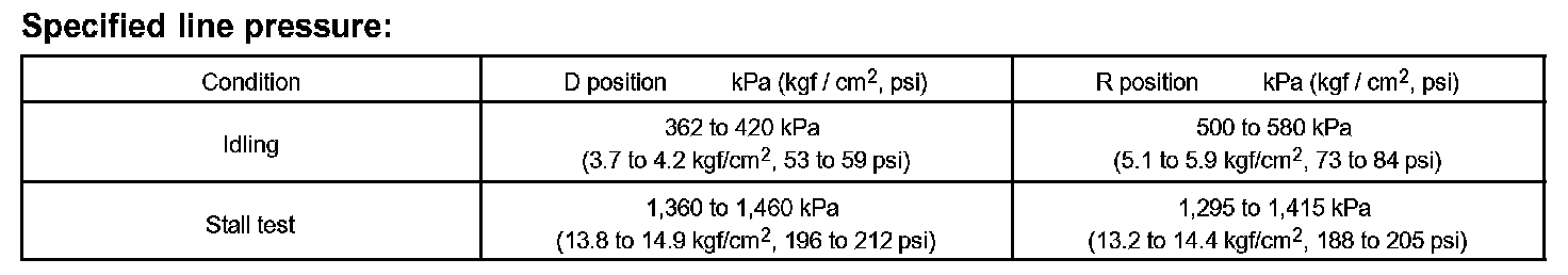 - Perform the test at the normal operating ATF (Automatic Transmission Fluid) temperature: 50 to 80°C (122 to 176°F).