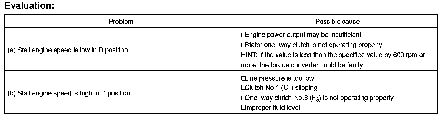 The object of this test is to check the overall performance of the transmission and engine by measuring the stall speeds in the D position.