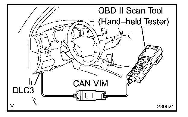 c. Connect the hand-held tester together with the Controller Area Network Vehicle Interface Module (CAN VIM) to the DLC3.
