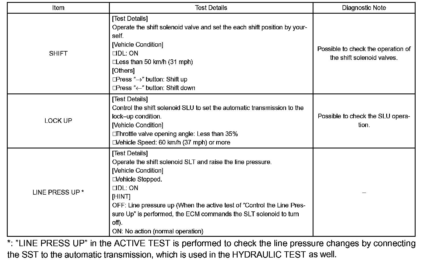 HINT: The pressure values in ACTIVE TEST and HYDRAULIC TEST are different from each other.