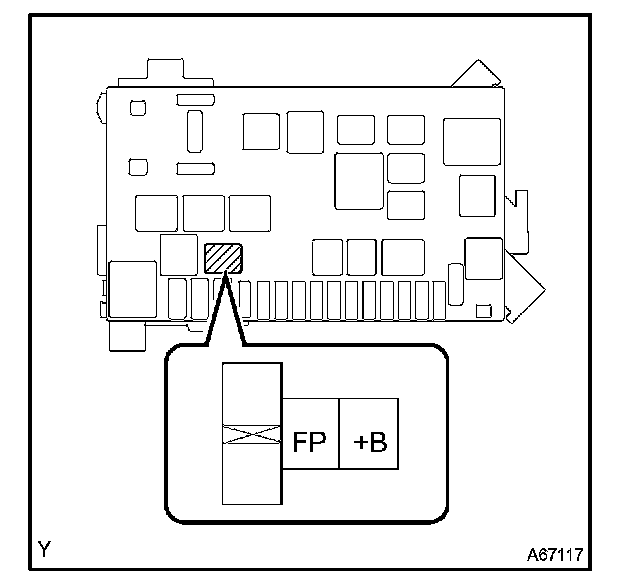 2. Using a service wire, connect terminals FP and +B of the relay block.