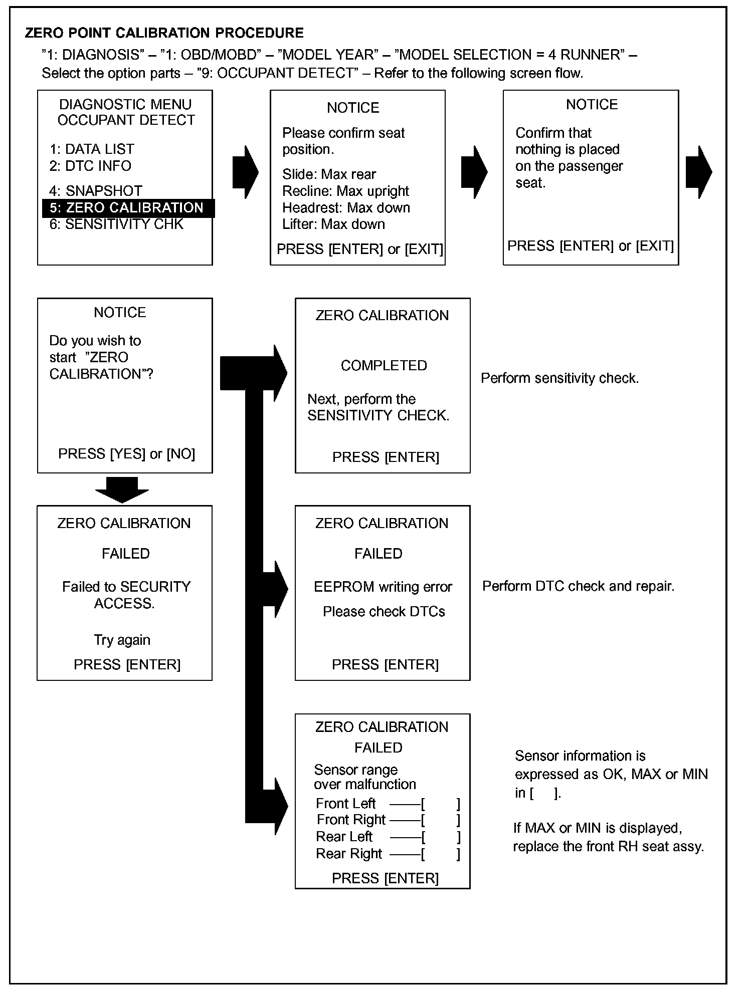 - When zero point calibration has not finished normally, replace the front RH seat assembly.