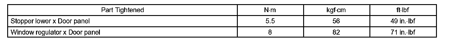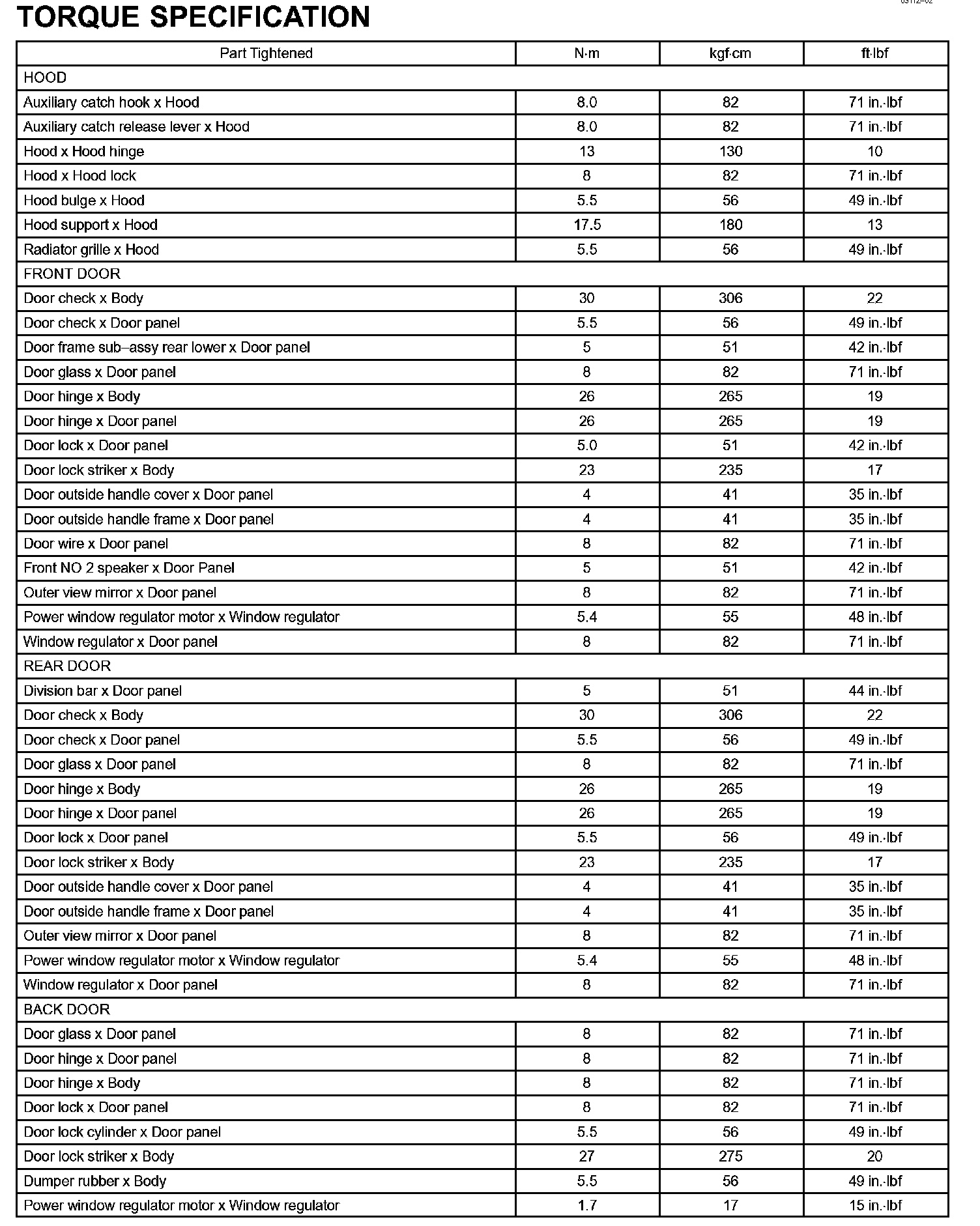 Engine Hood/Door - Torque Specification Part 2: