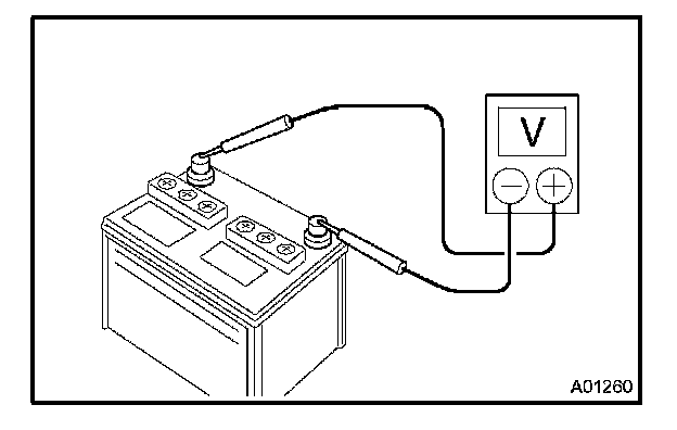 c. Measure the battery voltage between the negative (-) and positive (+) terminals of the battery.
