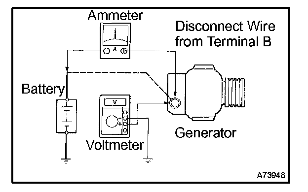 1. Disconnect the wire from terminal B of the generator and connect it to the negative (-) lead of the ammeter.