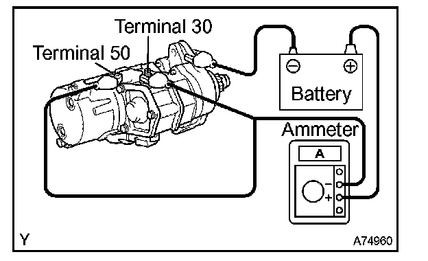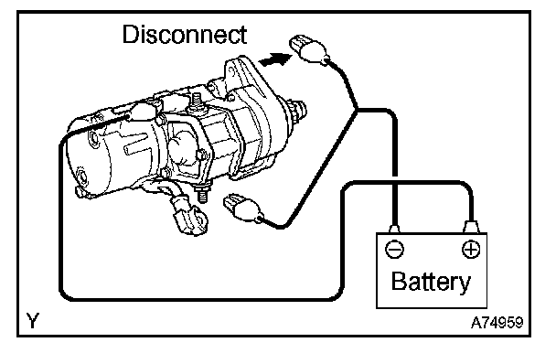 1. Disconnect the negative (-) lead from the switch body. Check that the clutch pinion gear returns inward.